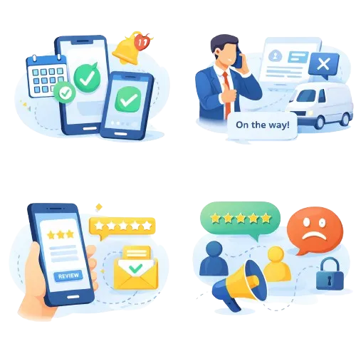After every completed job, we automatically request reviews and route unhappy customers to you privately first.